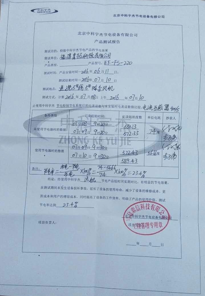 設備安裝后,經過嚴格的檢驗測試,對比安裝前后的實際能耗情況來看,顯示節能率達到23.4%,達到了預(yu)期的節(jie)電效果(guo)。此項節(jie)能項目改造,給用能企業帶了直接(jie)的經濟效益(yi)(yi)。按保質十五(wu)年計算,此次節(jie)能改造能為用能企業帶來五(wu)百三(san)十三(san)萬人民幣以上直接(jie)經濟效益(yi)(yi)。